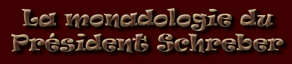 Hegel délirait le monde avec des mots tiroirs. Mais, concrétement, sa solidarité au réel rationnel consistait à boire des bières avec ses étudiants. Schreber, lui aussi, divaguait, de formules épiques en incantations magiques à la totalité. Mais il y donnait son corps, ses entrailles, pour que le monde trouve son salut en s'y inscrivant profondément, et donc douloureusement. Daniel Paul n'est pas, quant à lui, un simple bateleur de transcendance. Et l'injustice des hommes, fidèle à ses principes, fait du premier, le charlatan, comme l'appelait Schopenhauer, un héros de la pensée humaine, et du second un pauvre fou qui n'aurait pas bien su intégrer le sexe de son père dans son histoire. Cette modeste page pour reconnaître modestement la grandeur surnaturelle, quand bien même délirante, de Schreber fils, l'homme qui n' a pas craint de partir seul au combat pour sauver le monde. |