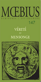 Un verre casséNouvelle parue dans le n°147 de la revue Moebius(Montréal) « Le mensonge et la vérité ont souvent une même odeur et une même saveur. La mort, le rêve, la trahison ou l'espoir ne tombent pas avec évidence d'un côté ou de l'autre de la frontière. La vérité, qu'on pourrait croire pure et translucide comme le cristal, a pourtant des crocs et des griffes. Le mensonge, qu'on imagine cruel comme l'oeil de Satan, a parfois la douceur de la soie. Dans les textes qui suivent, on verra nos sens nous tromper, nos souvenirs être falsifiés, le rêve et la mort semer le doute; les pouvoirs médiatiques s'élever en dignes représentants de la vérité. (Mario Vivier, pilote du numéro) La presse canadienne |