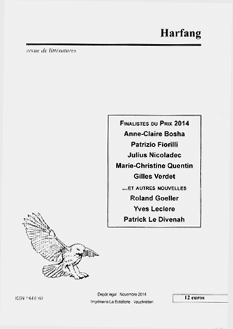Suivre ou ne pas suivreParu dans le n°153 de la revue Florilège, décembre 2013. "Autant le « Je est un autre » du poète m’avait bouleversé, comme le font les évidences dont on découvre un jour qu’on les a toujours sues sans être jusque-là capable de les énoncer, autant le « Je pense, donc je suis » du philosophe m’était durablement resté abscons, pour ne pas dire moins." Lauréat du concours de nouvelles n°41 de la revue. |