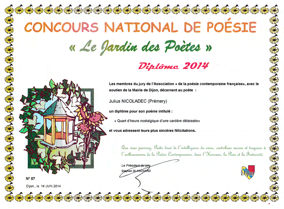 Retenu au concours de poésie 2014 | ![]() |